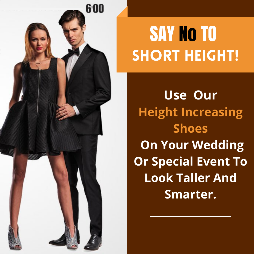 We also offer elevator shoes which increase the height of the wearer up to 3 inches without other people noticing as the height is increased using a hidden heel.